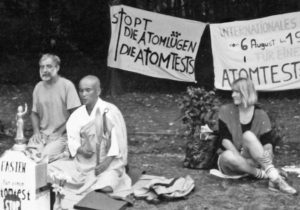 Derek with Lucile Kerkmeer and Nipponzan Myojoji Buddhist monk fasting for peace, Germany, circa 1991 Nov 3, 2016
