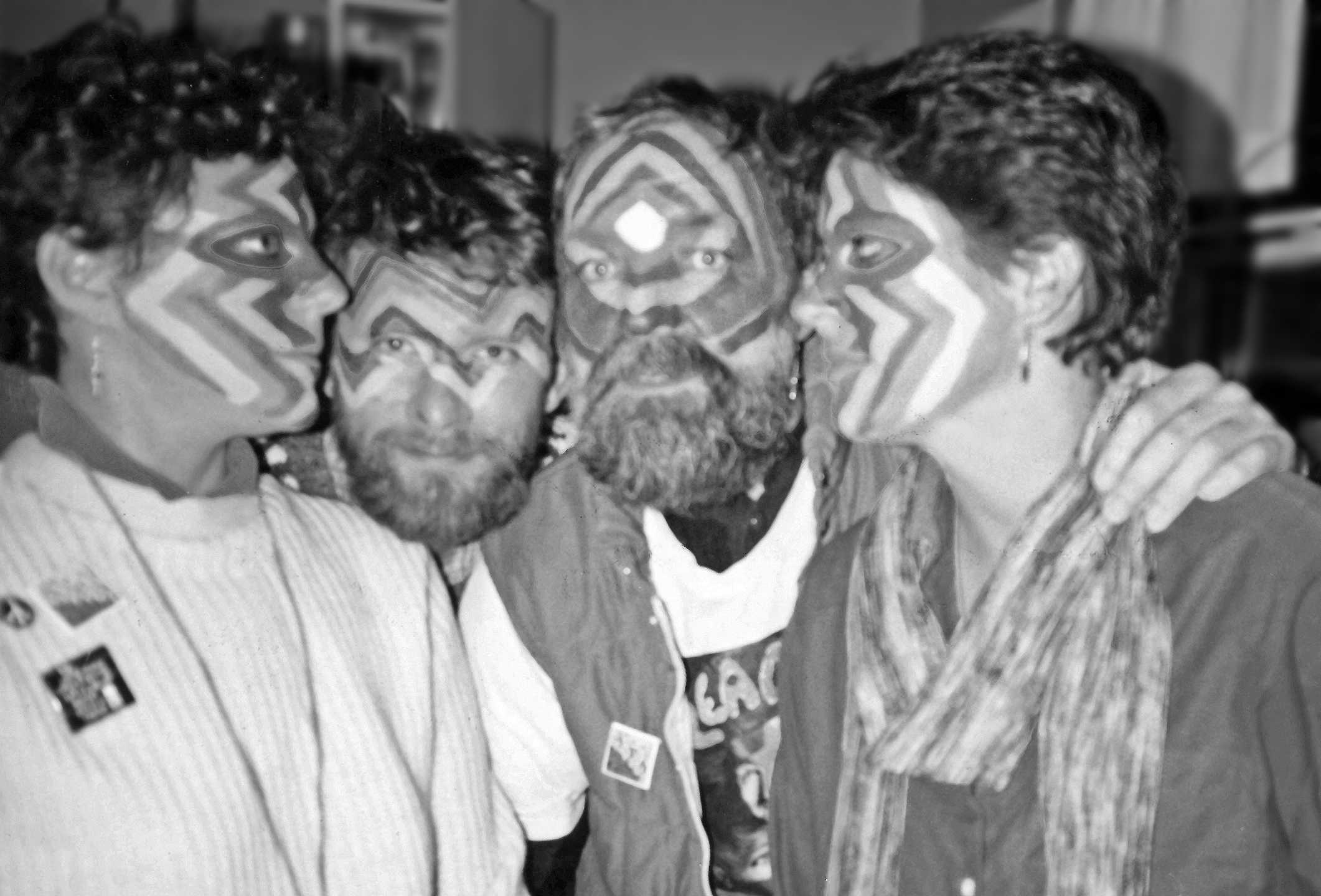 Derek with friends Isabelle, Zachariah Crow, and unidentified in Philadelphia at Halloween, 1986, during the Great Peace March Nov 3, 2016